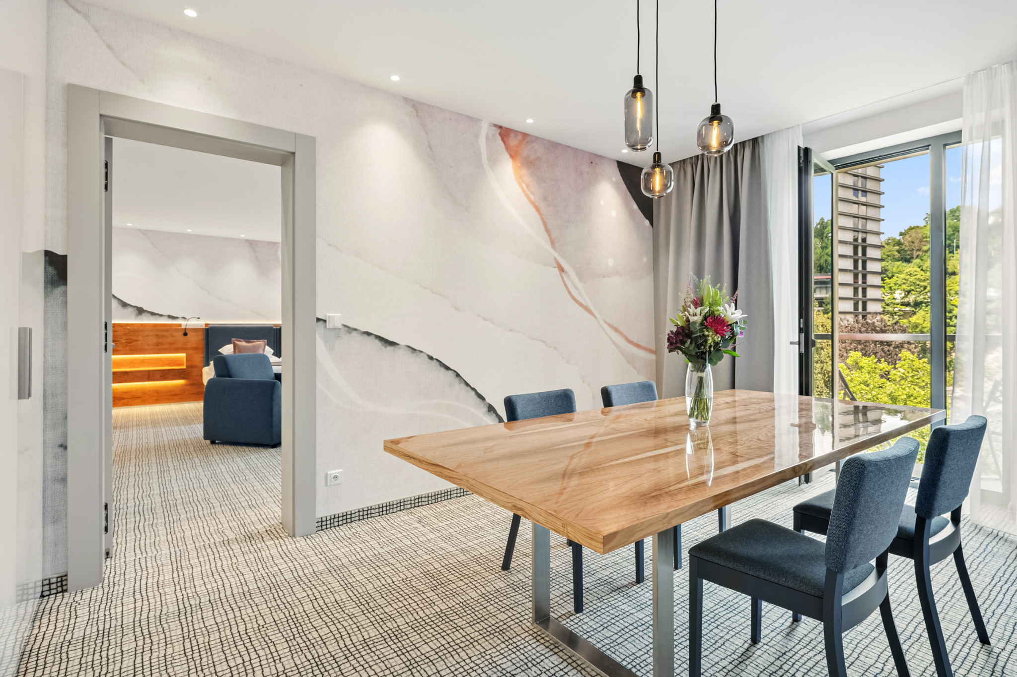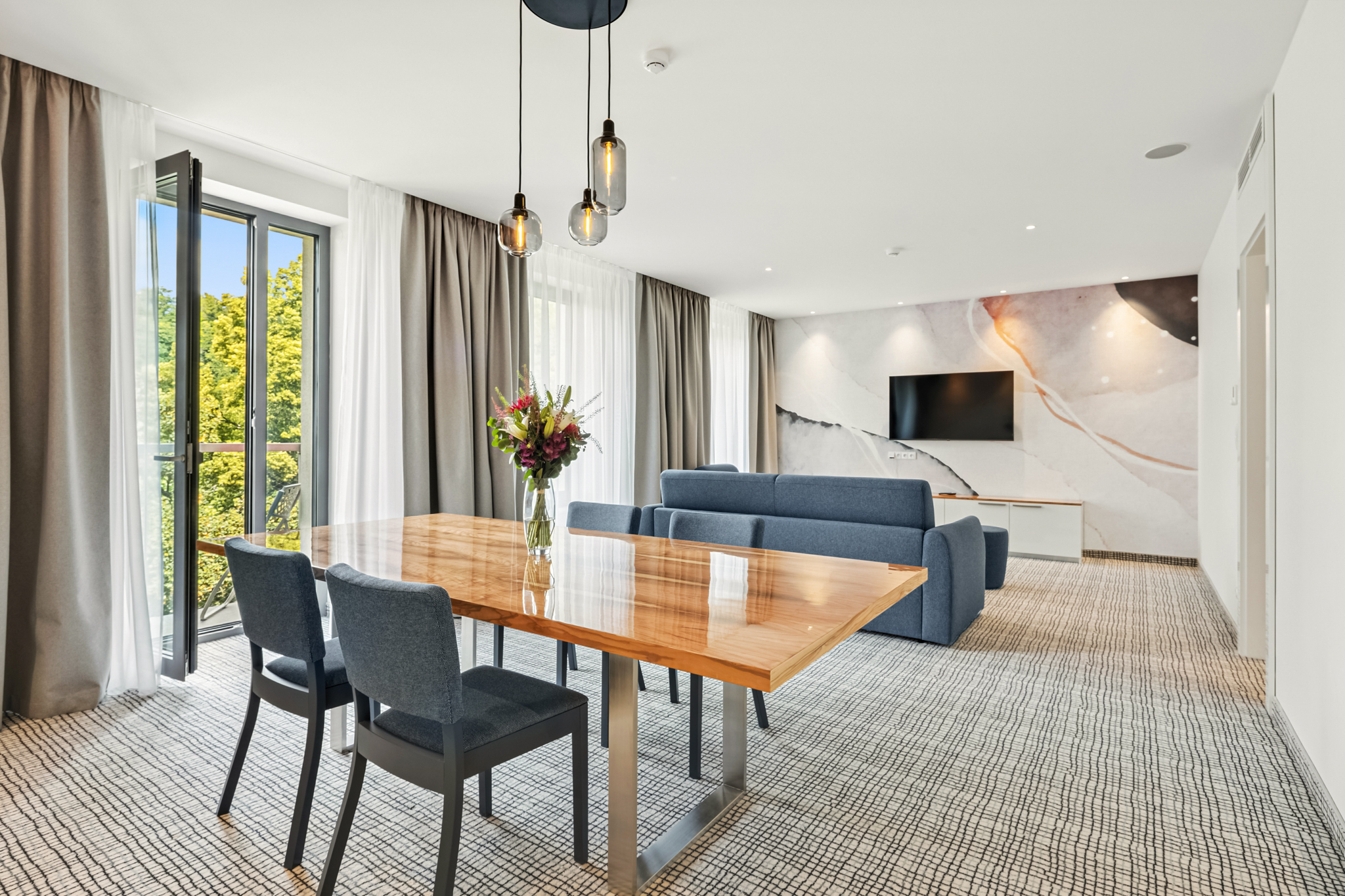 Tři mimořádně prostorná a luxusní dvoupokojová apartmá o rozloze minimálně 87 m², která splňují nejvyšší nároky na pohodlí a eleganci. Všechny pokoje se nacházejí v moderní budově St. Joseph Tower a jsou klimatizované, což zajišťuje příjemné prostředí po celý rok.