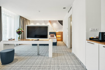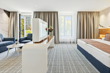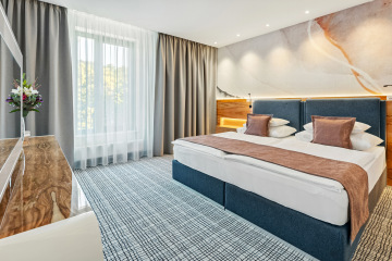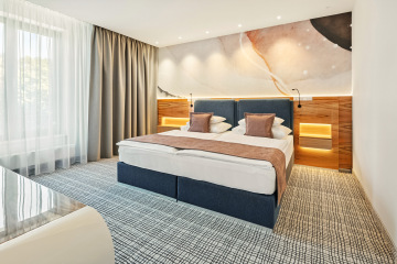 Prostorný, klimatizovaný pokoj o rozloze minimálně 46 m² nabízí dokonalé pohodlí a jedinečný výhled na Karlovy Vary. Všechny pokoje se nacházejí v moderní budově St. Joseph Tower a jsou vybaveny velkorysou postelí o rozměrech 200 × 200 cm.