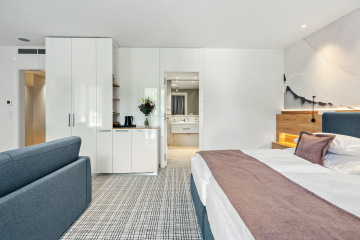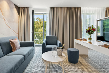 Každý z 11 pokojů typu Junior Suite City View disponuje vlastním balkonem s posezením, ideálním pro ranní kávu nebo večerní relaxaci. Pokoje umožňují přistýlku s plnohodnotným komfortem, a některé z nich lze propojit s dalším pokojem nebo připravit s oddělenými lůžky – ideální řešení pro rodiny nebo přátele cestující společně.