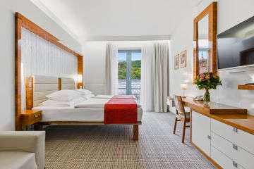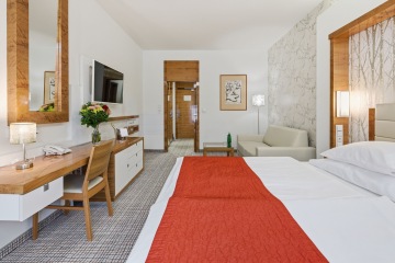 Pokoj kategorie Superior nabízí hostům nadstandardní prostor cca 26 m², který zajišťuje maximální pohodlí během vašeho pobytu. K dispozici je king‑size nebo twin řešení, podle vaší individuální preference.