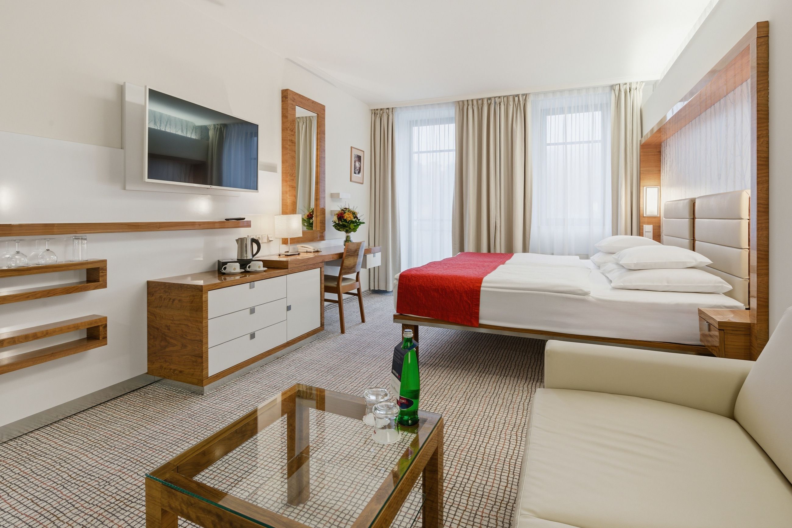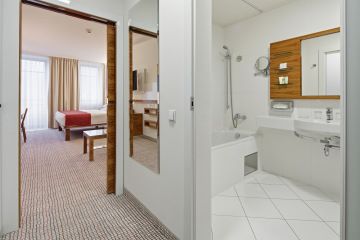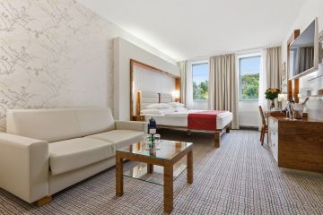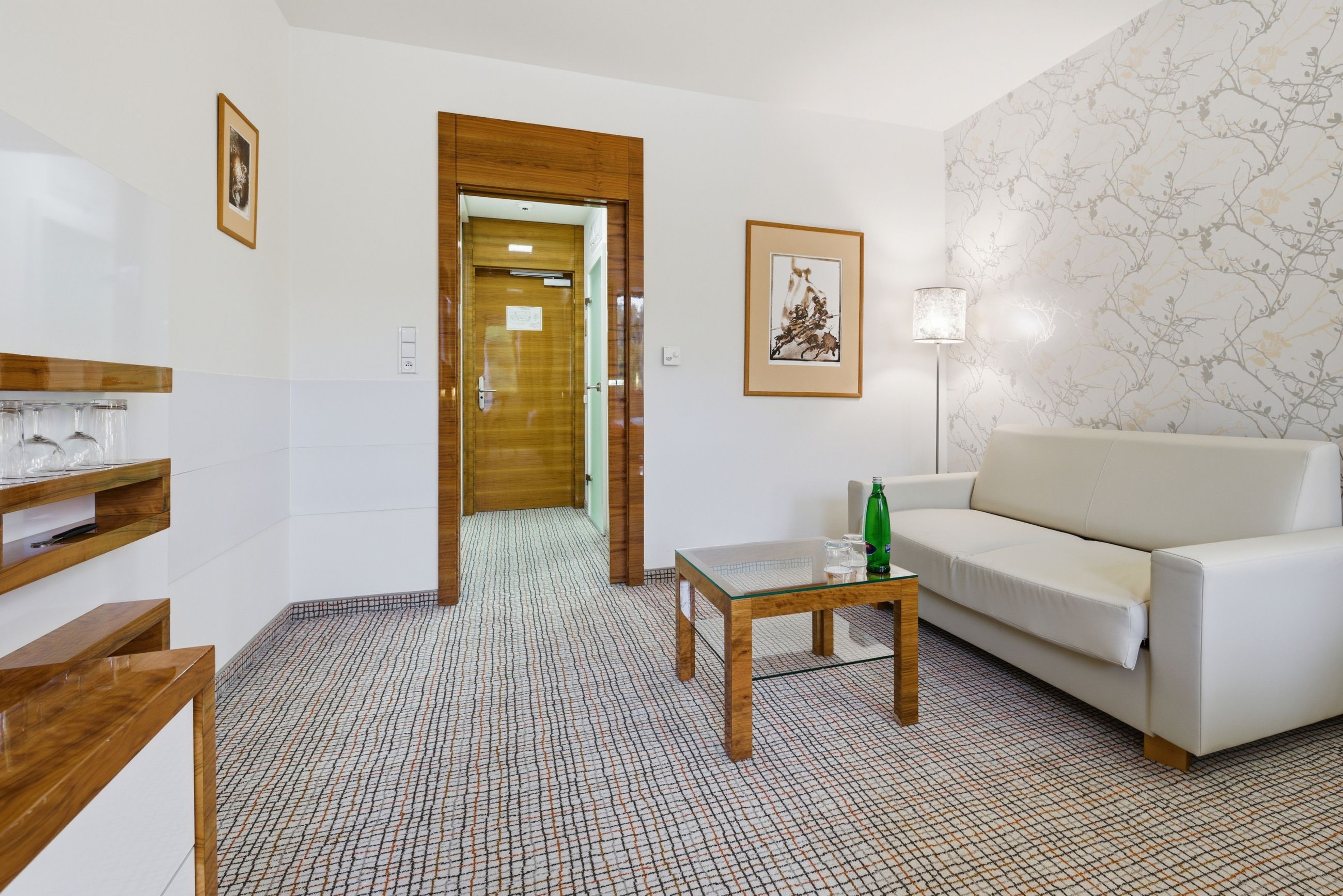 Pokoj Vista Grand doporučujeme hostům, kteří chtějí zažít lázeňský pobyt na vyšší úrovni – s větším prostorem, elegantním interiérem a nezapomenutelným výhledem.